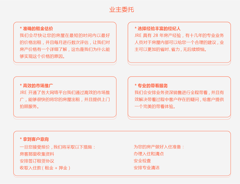 因此,选择一个大型、靠谱、值得信赖的房产中介就很重要。JRE上海昊龙房产拥有28年房地产品牌营销经验沉淀,贴心的管理及涉外服务团队,大量的投入研发网络产品,多功能的房源及客户数据库,世界各大企业战略合作关系,多年来市场内保持影响力。我们负责房屋装修与维护、上门拍照服务、高效的市场宣传推广、带看服务、出租后合同的撰写与审核、替业主代开发票。